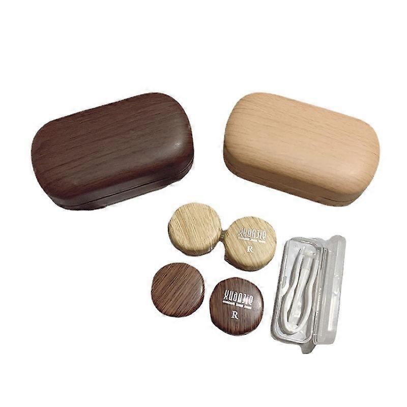 2pcs wood grain contact lens case contact box suitable for travel portable contact box