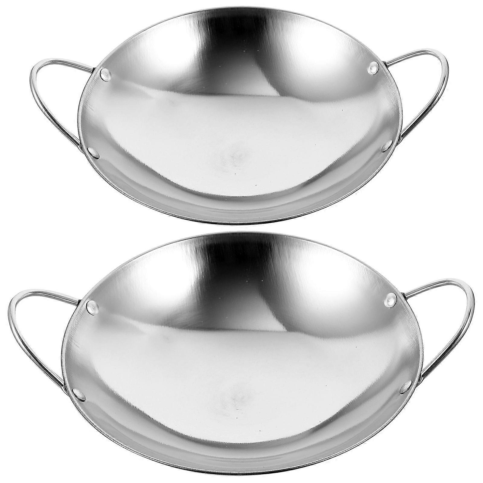 2pcs Stainless Steel Wok Traditional Wok Dual-handled Metal Wok Thicken Cooking Pot