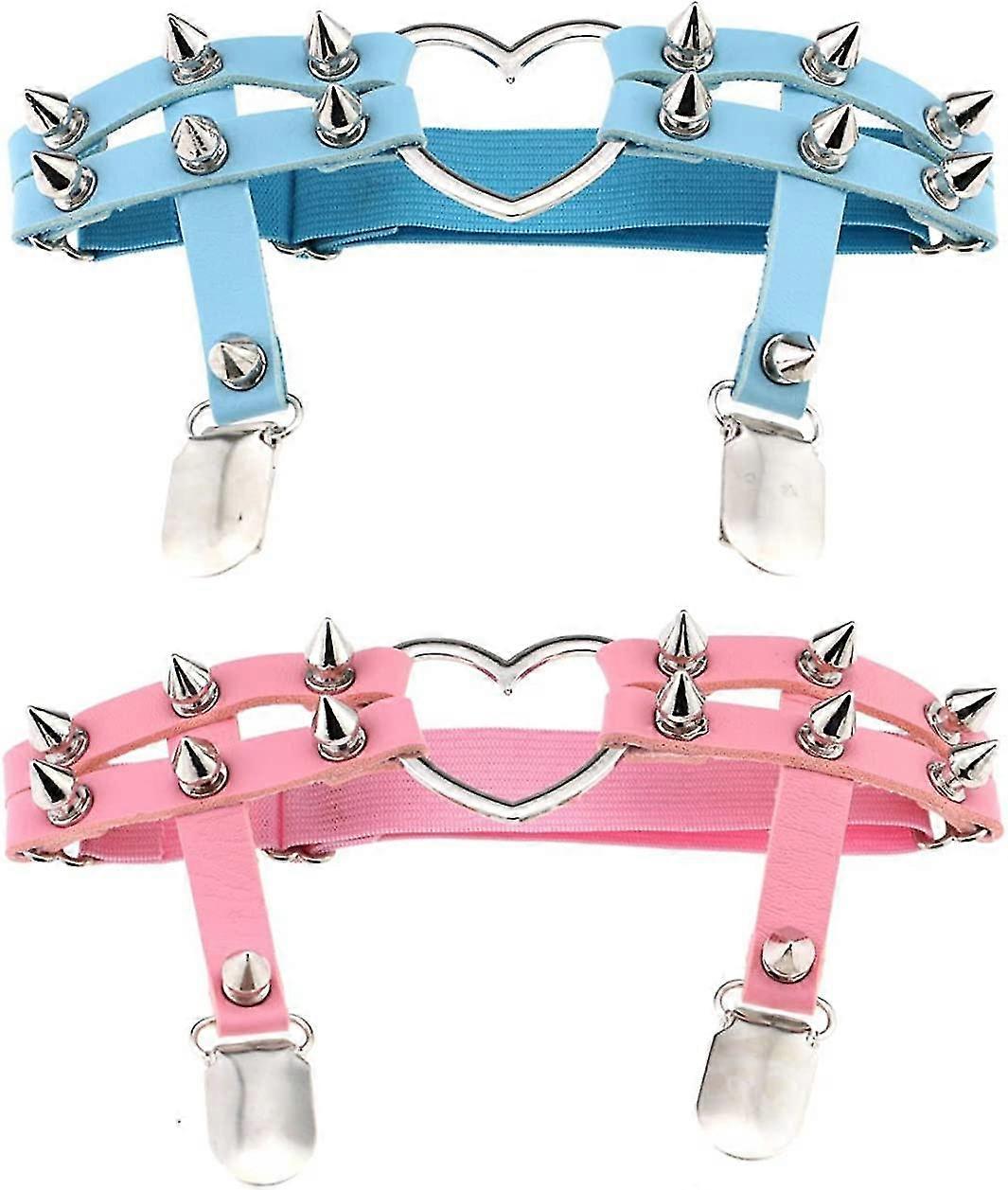 2pcs Women Girl Sexy Leather Punk Rivet Stud Leg Garter Heart/YY