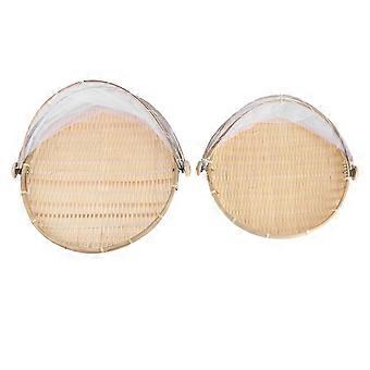 2PCS Household Steamed Bread Basket Round Dustpan Bamboo Woven Storage Basket