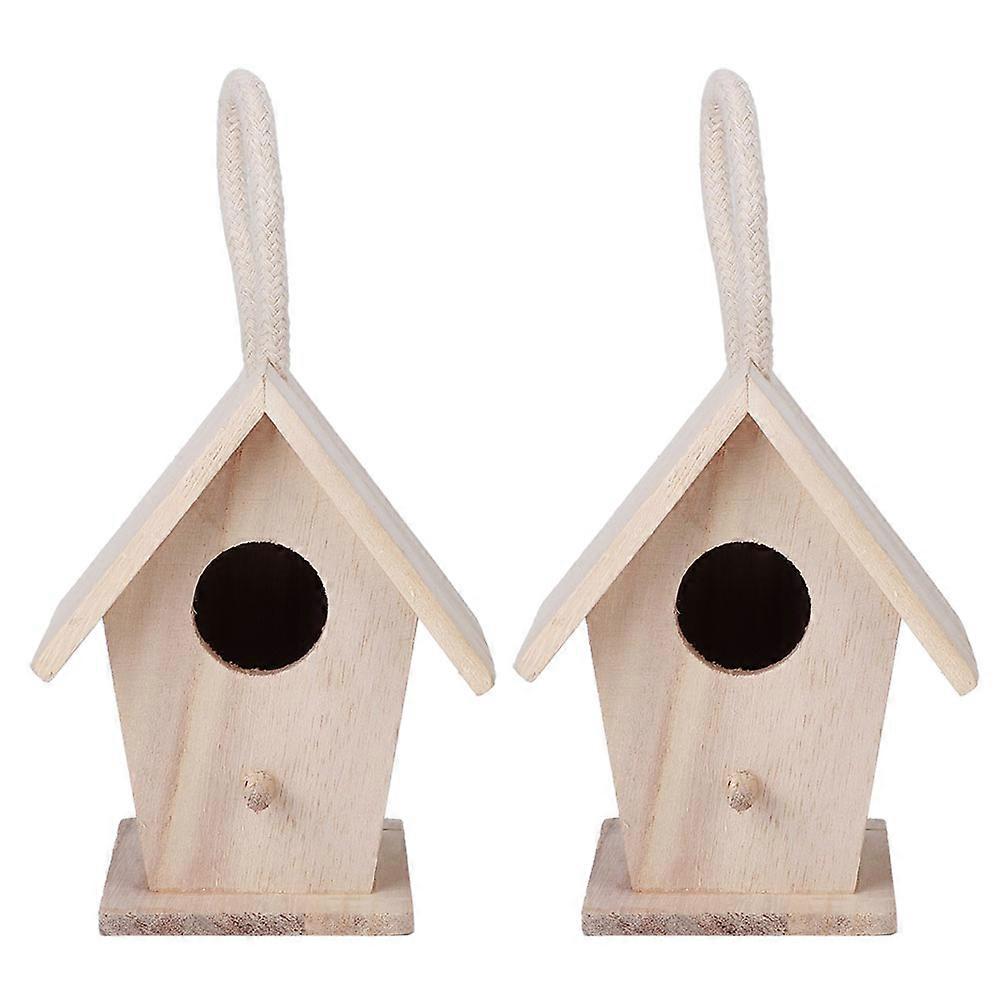 2PCS Wooden Bird House Hanging Nesting Box for Outdoor Garden Patio Decorative Accessories
