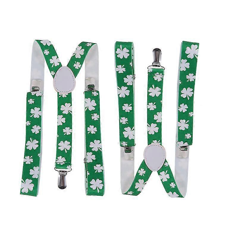 2pcs 2.5cm Width Four Leaf Clover Suspenders Practical 3 Clips Elastic Braces For Men Women (green Four Leaf Clover)