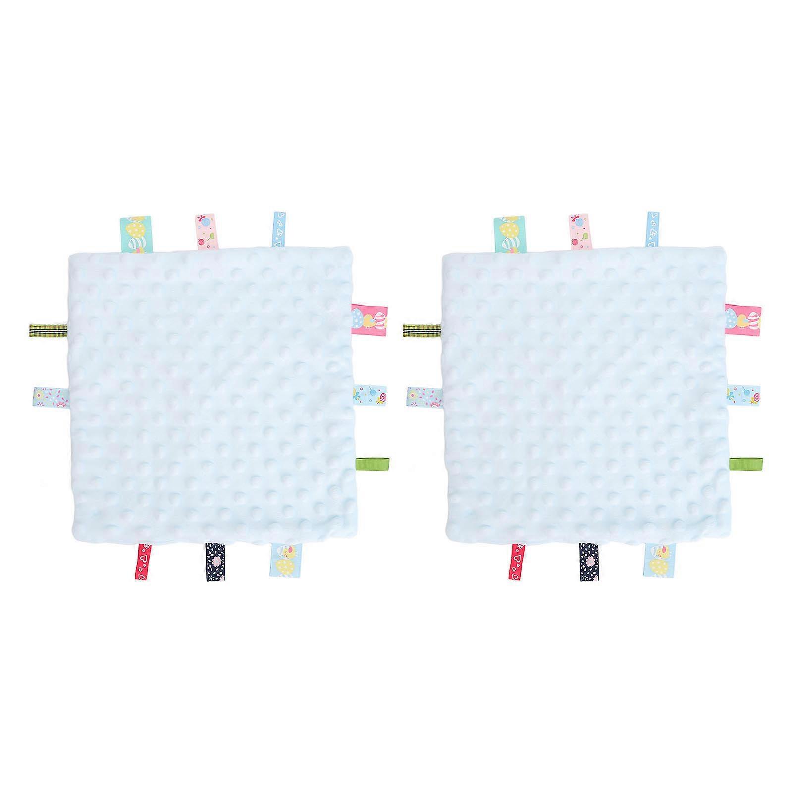 2pcs Baby Tags Security Blanket Pure Cotton 3D Particle Sensory Development Baby Comfort Blanket with Colorful Tags Blue