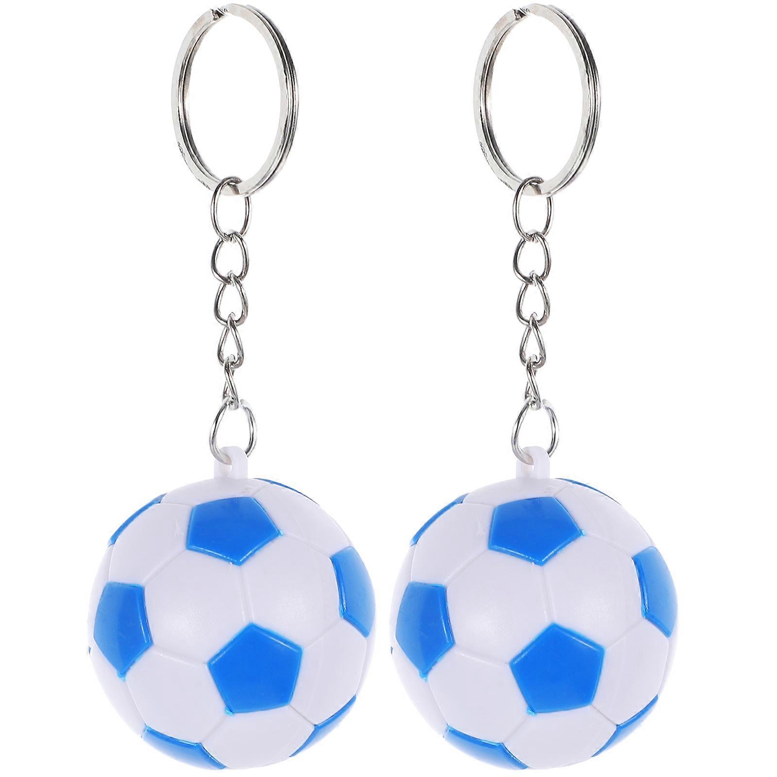 2PCS 4CM Soccer Ball Keychains for Kids Party Favors and School Carnival Prizes (Blue)