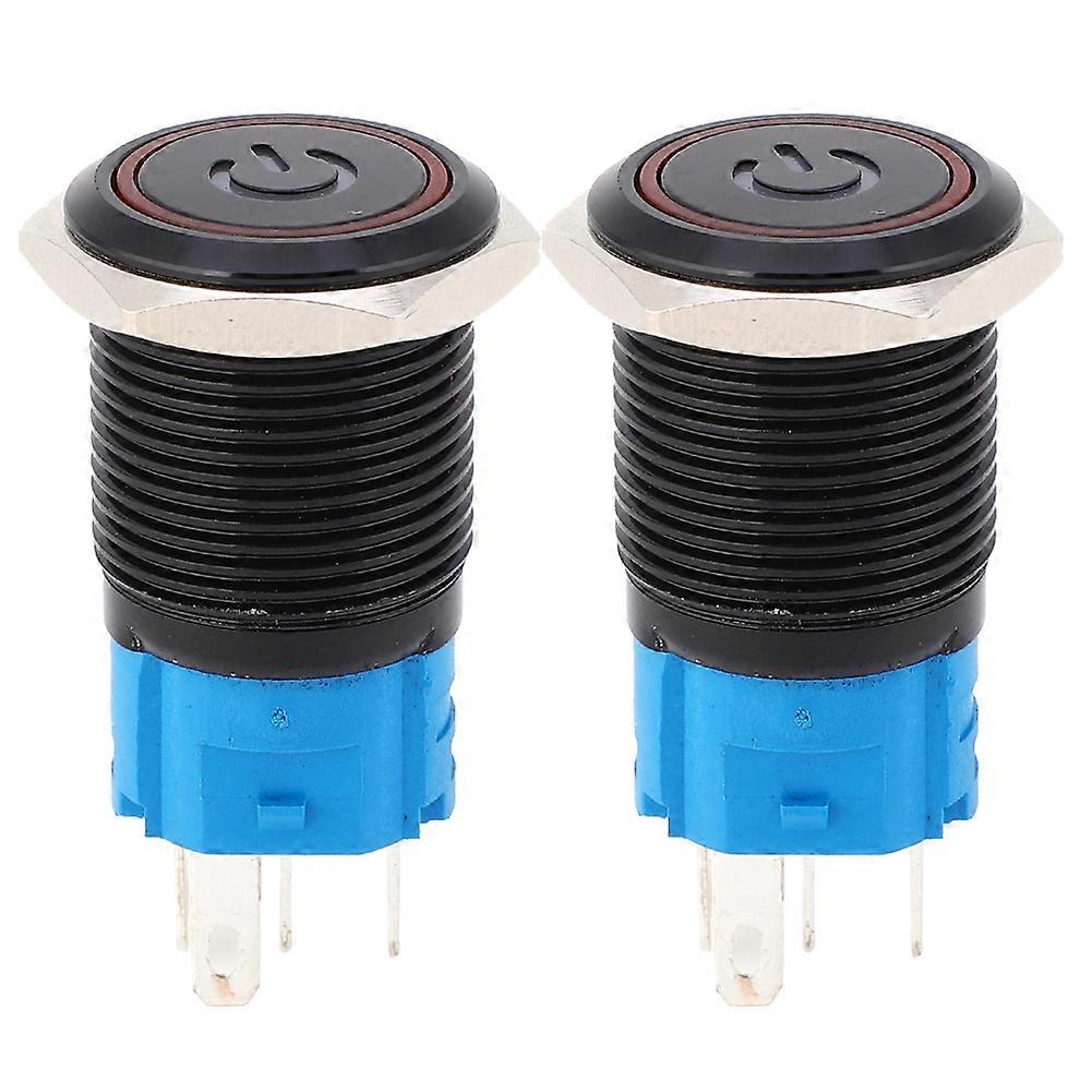 2PCS Black Self Locking Metal Switch IP65 Protection with LED Lamp and Symbol 16mm(Red 220VAC)