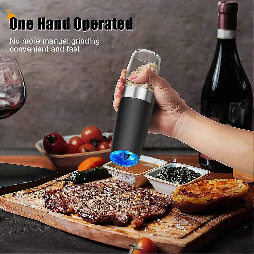 2PCS Salt & Pepper Grinder Electric Gravity Grinder Refillable Automatic Mill Set with Adjustable Coarseness LED Light A