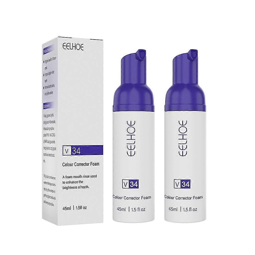 2pcs V34 Foam Corrector Teeth Whitening Toothpaste Enamel Care Easy Smile Removal Plaque Stain Reduce Yellowing Oral Clean Care