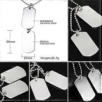 2x High Polished Stainless Steel Silver Dog Tag Pendant Necklace Ball Beads Chain Men Women Jewelry