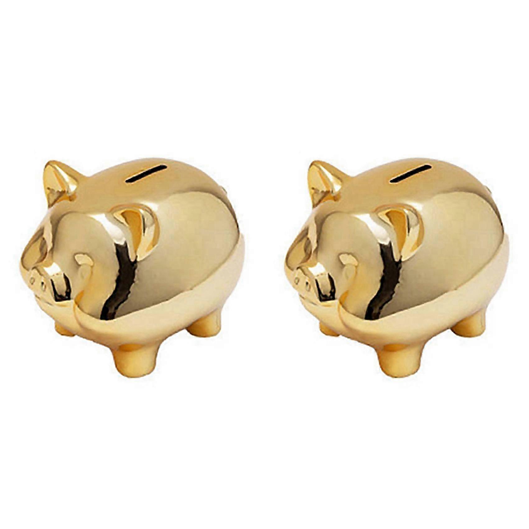 2X Ceramic Gold Pig Piggy Bank Cute Coin Piggy Bank Lucky Pig Decoration,Gold Pig