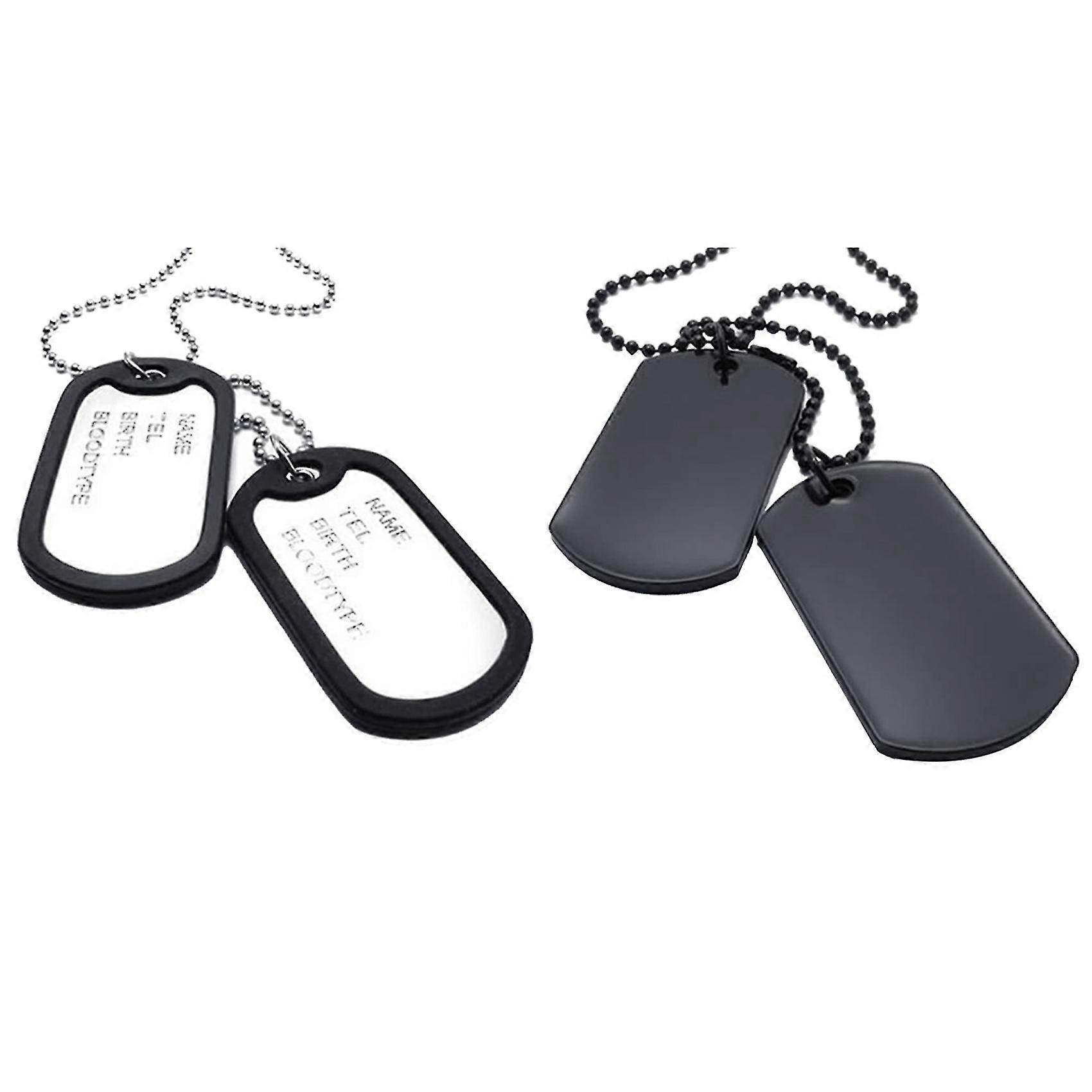 2x Jewelry Mens Women's Necklace, 2 Tag Style Dog Tag 68 Cm Pendant With Chain, Black & Silver Blac