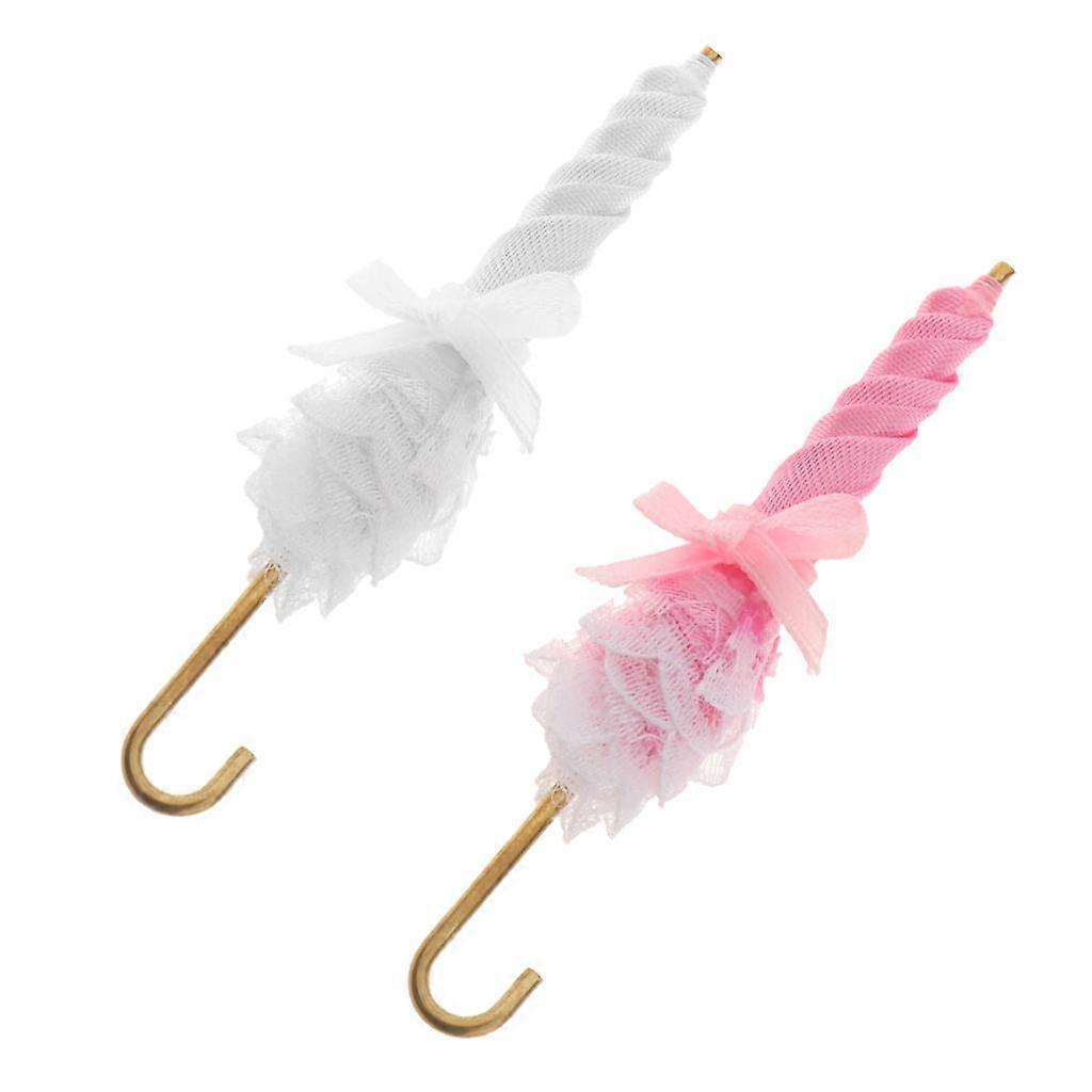 2x Modern 1/12 Scale Lady Lace Parasol Umbrella for Doll House Furniture Decor