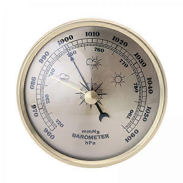 Description: The barometer adopts metal movement, which is durable, good performance, for long service life. Measures in both mmHg and hPa of mercury Gold metallic case, gold dial, black numerals and pointer Barometer range: 960-1060hpa, the dial diameter is 90mm Lightweight and easy to install, suitable for hanging or placing on a surface. Installed on terraces, gardens, porches, garages, etc. Specification: Material: Metal Size Chart: Size: diameter - 90mm/3.54inch thickness - 38mm/1.49inch Package Includes: 1 Piece Barometer(2 Pack) Note: 1. Please allow slightly error due to manual measurement. 2. Due to the difference between different monitors, the picture may not reflect the actual color of the item. 3. Wish you a wonderful on-line shopping!
