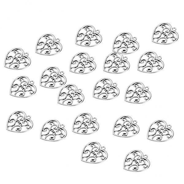 2x20 Pieces Antique Filigree Hollow Heart Charms DIY Crafts Antique Silver