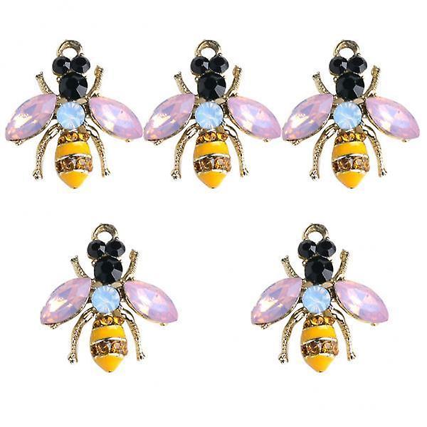2x5 Pieces Enamel Bee Charms Diamante Pendant DIY Clothes Shoes Bag Decoration