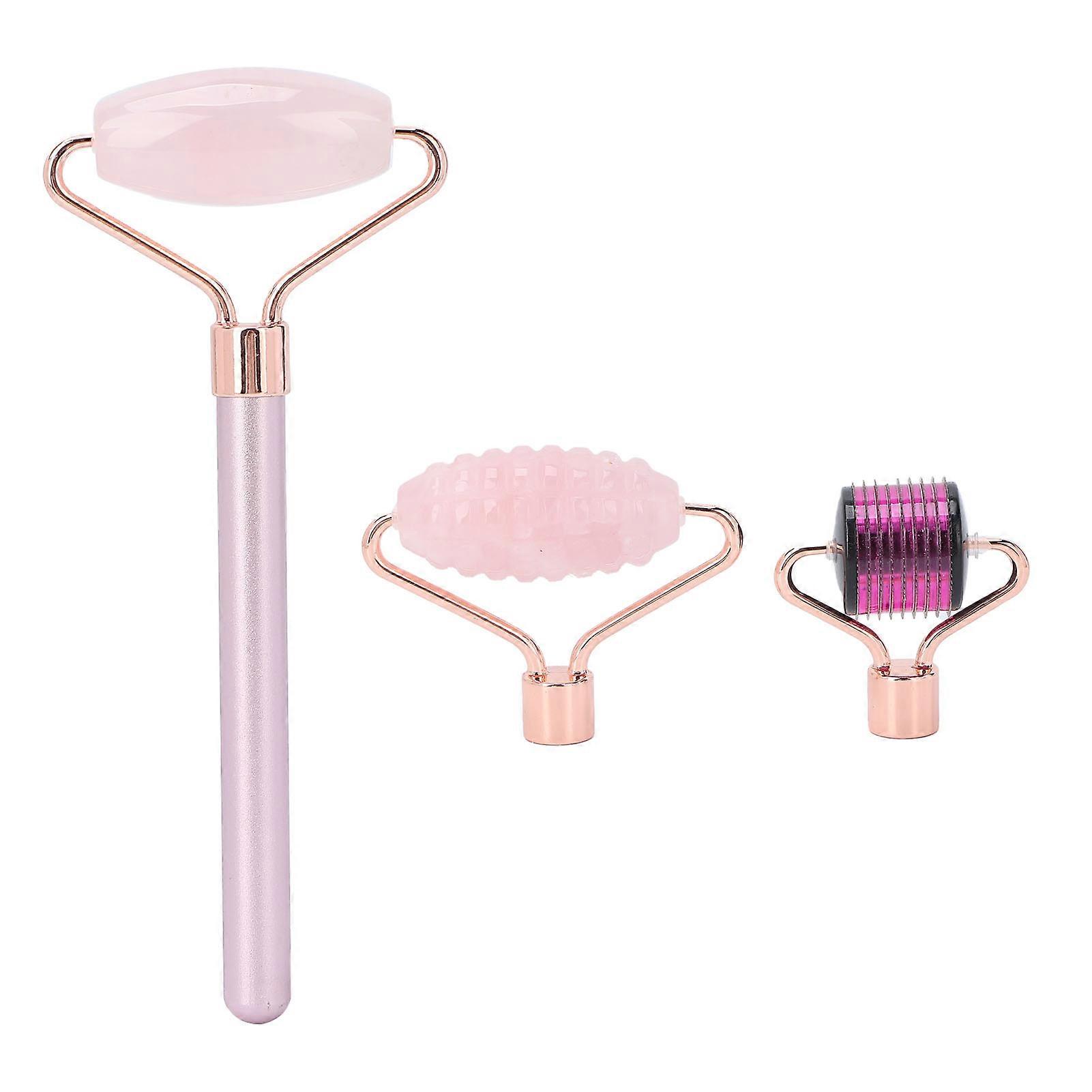 3 in 1 Rose Quartz Face Roller Massager Microneedle Massage Tool for Face Beauty