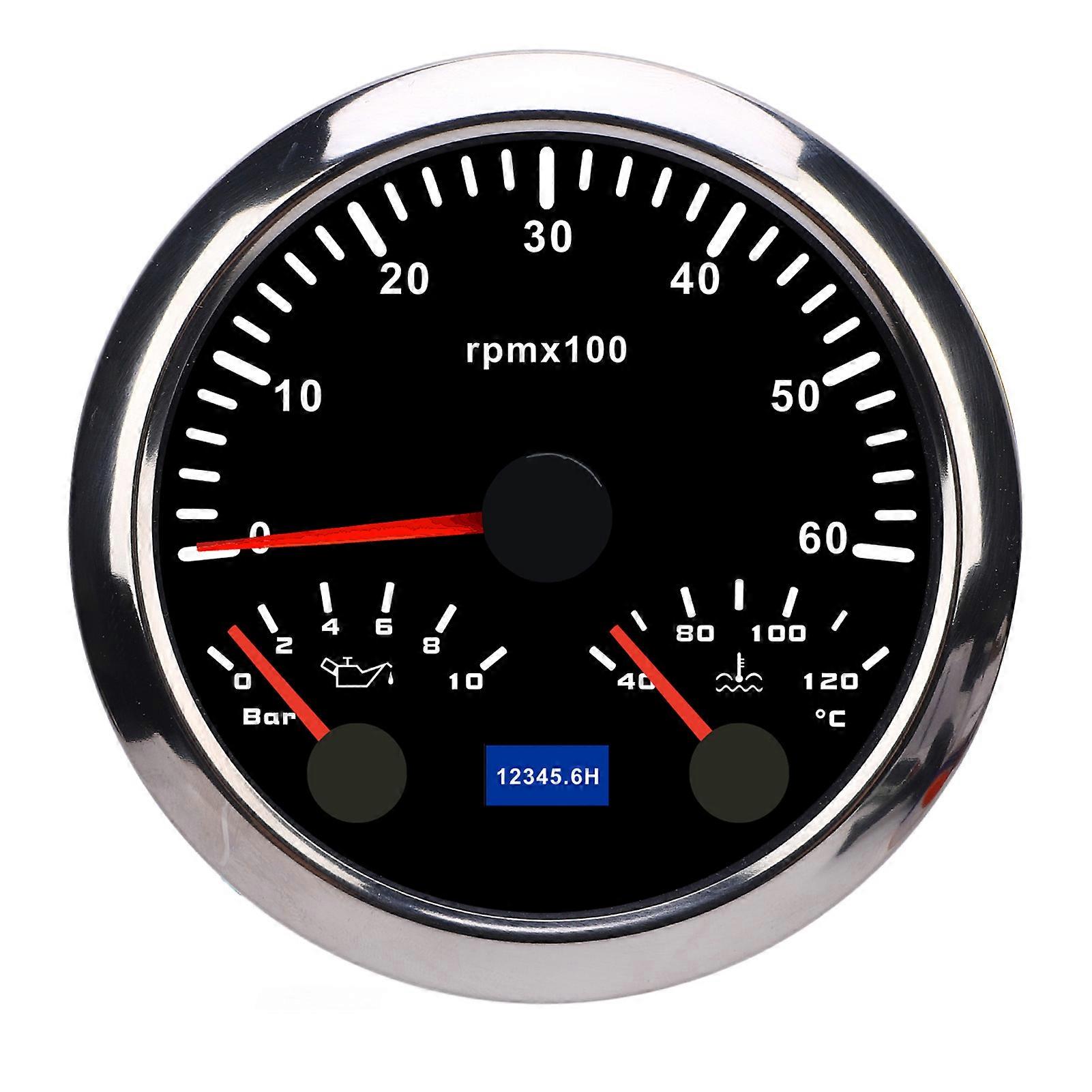 3 In 1 85mm Tachometer DC 9 to 32V 6000rpm 0 to 10bar Oil Pressure 40 to 120℃ Water Temp 7 Color Backlight for Car Boat Truck