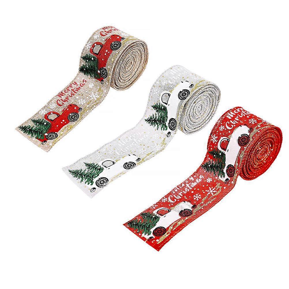 3 Rolls Festive Christmas Ribbon with Car Design – Perfect for DIY Gift Wrapping, Holiday Crafts, and Party Decorations