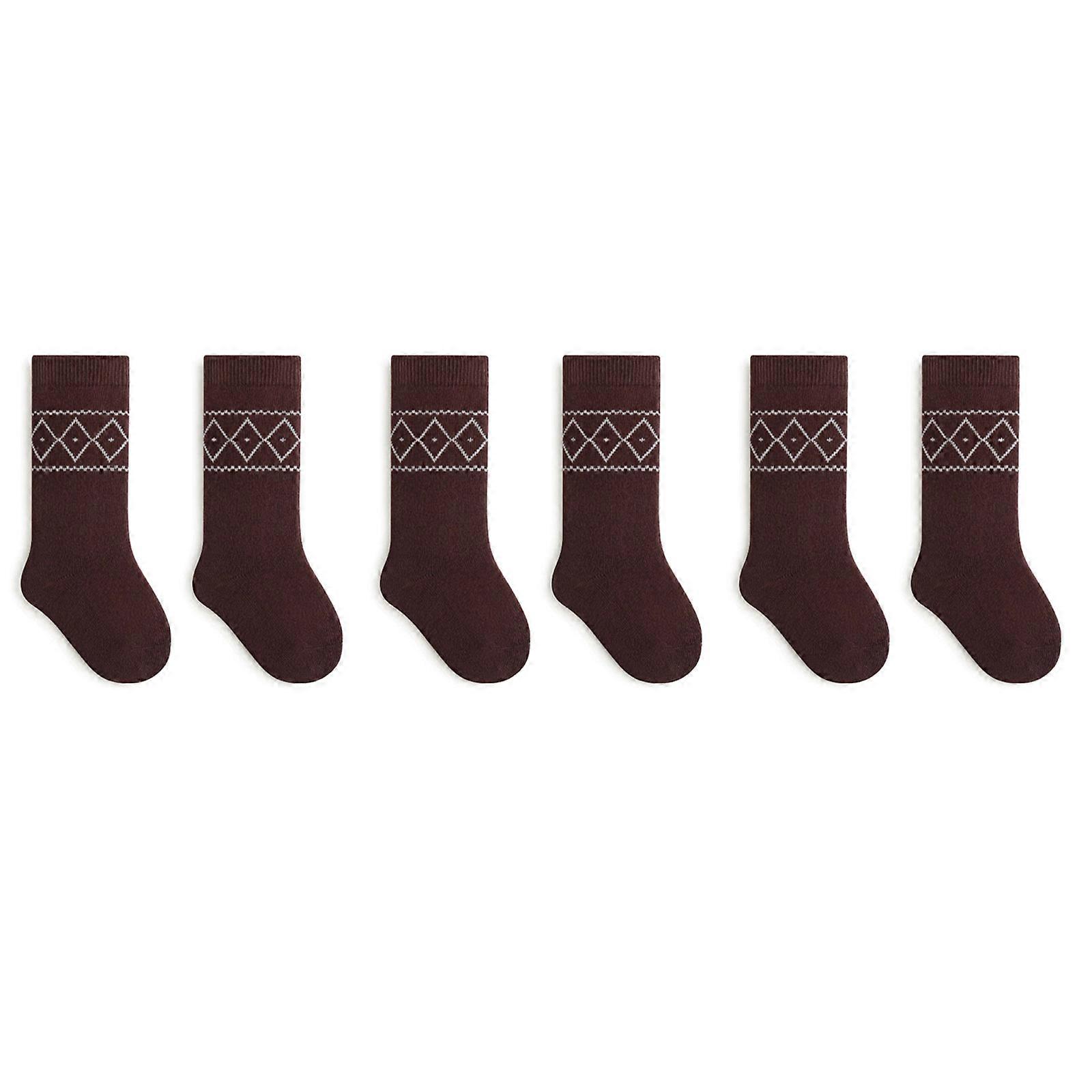 3 Pair Soft Elastic Children's Long Socks Boneless Toe Design Combed Cotton Socks Spring Fall Wear Daily School Wine Red XL
