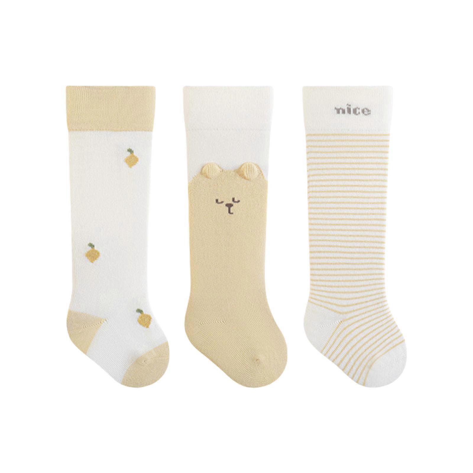 3 Pair Breathable Cotton Kids Long Tube Socks For Fall Autumn With Reinforced Toe Heel And Stretchy Fit Design Yellow XS
