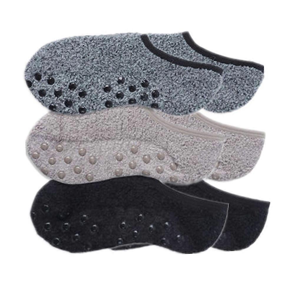3 Pairs Indoor Thickened Non-Slip Floor Socks Sports Yoga Socks for Women Fitness Sports (Black, Grey, Khaki)