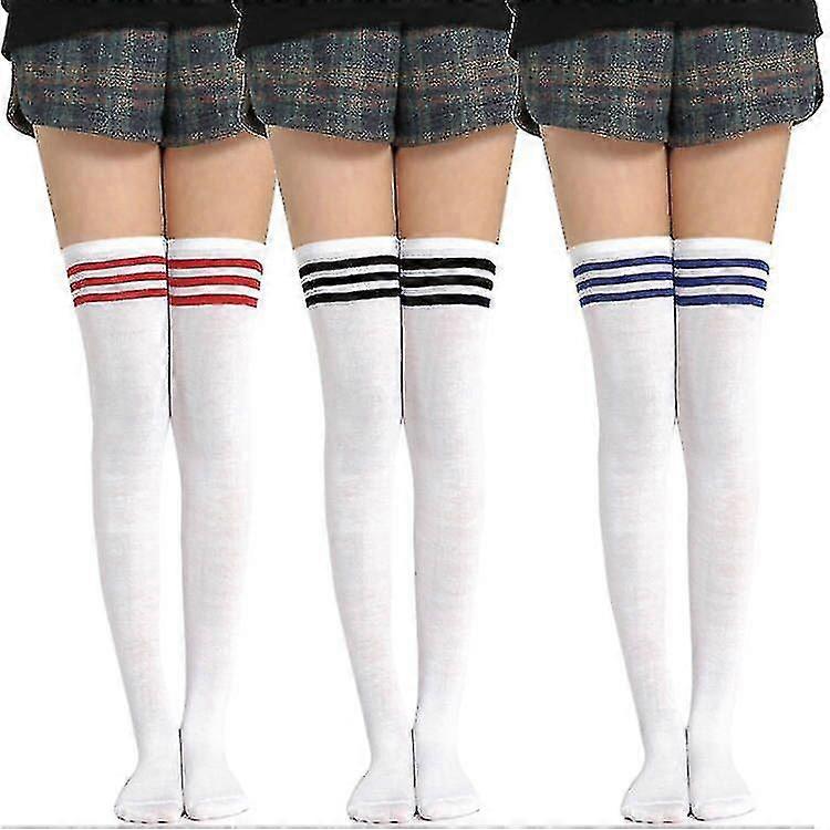 3 Pairs Women's Triple Stripes Over The Knee High Socks Dance Socks