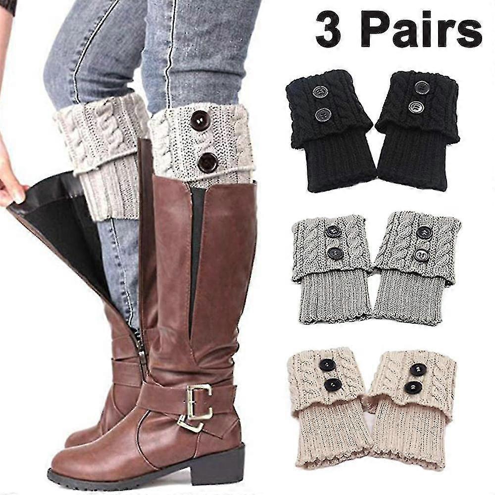 3 Pairs Womens Short Boots Socks Crochet Knitted Boot Cuffs Leg Warmers Socks