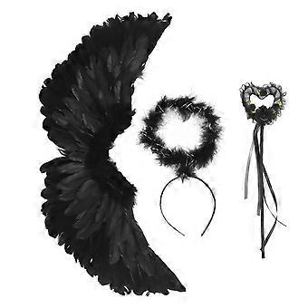 3 Pack Devil Angel Wing Set Handcrafted Lightweight Adult Angel Wing Set for Halloween Role Play Black S Angel