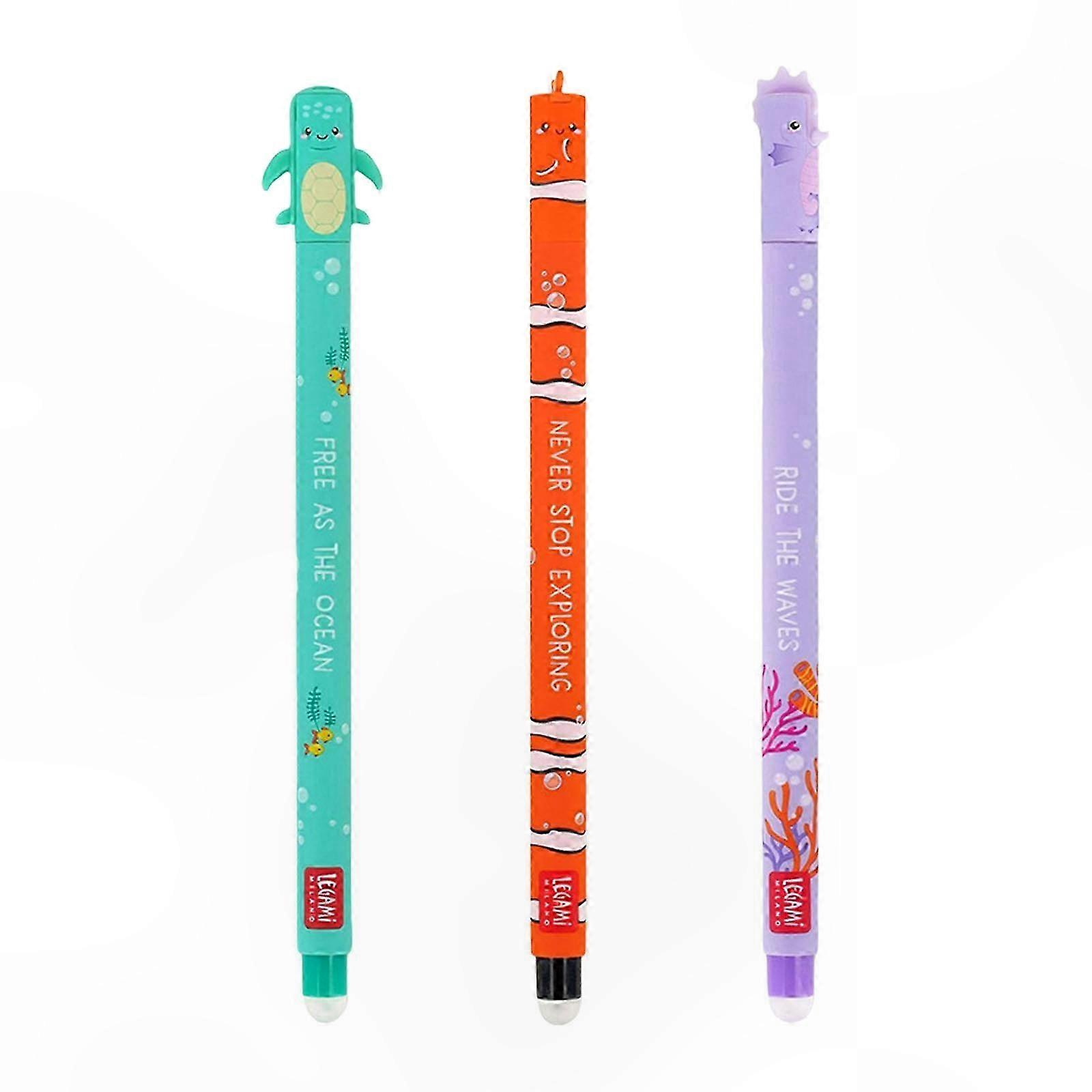 3-Pack Fine Tip Gel Pens, 0.35mm Cartoon Design, Erasable & Quick-Drying for Writing, Journaling, Students and Adults