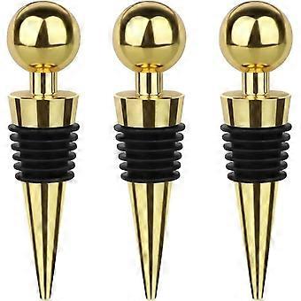3 חבילת פקקי יין, פקקי יין מפלסטיק, פקקי יין לשימוש חוזר (זהב)