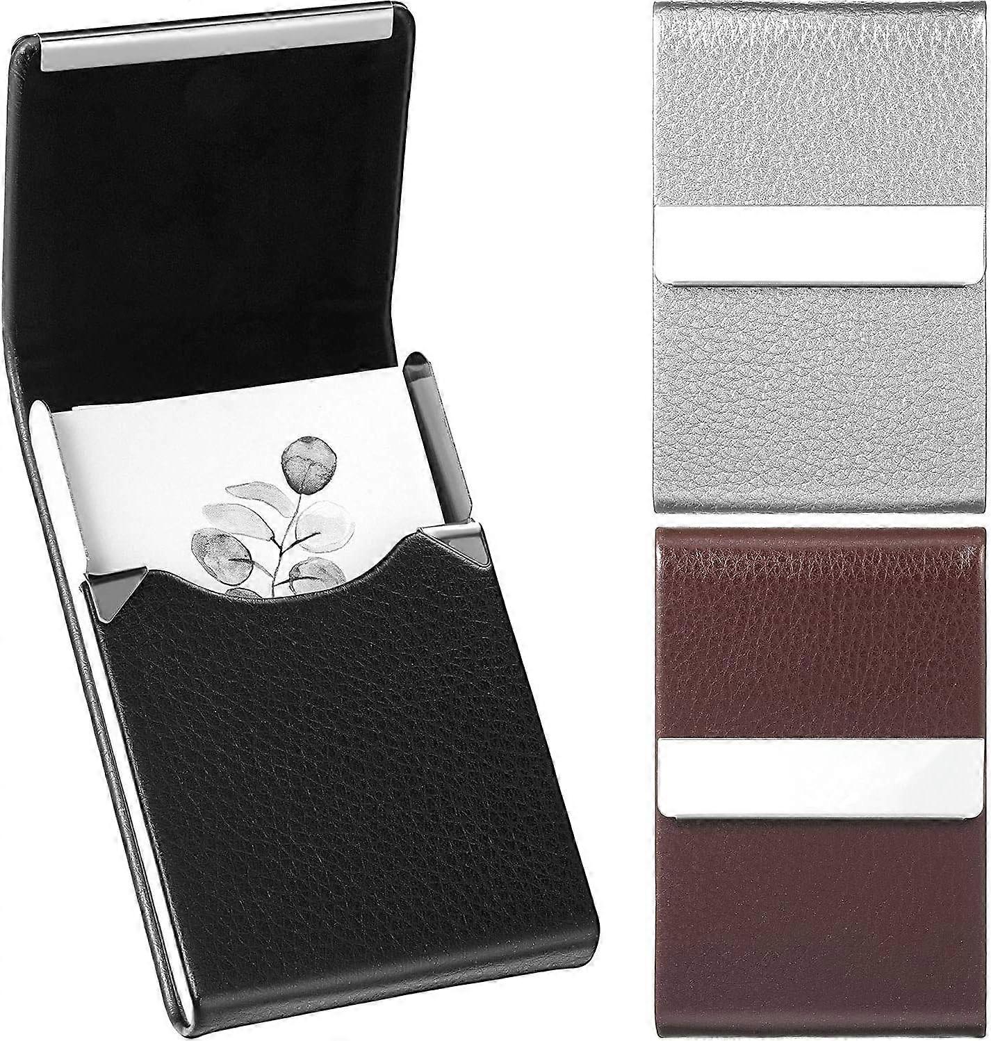 3 Pieces Business Card Holder PU Leather Business Card Case Name Card Holder Slim Metal Pocket