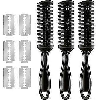 3 Pieces Razor Comb With 10 Pieces Razors, Hair Cutter Comb Cutting Scissors, Hair Thinning Comb Slim Haircuts Cutting Tool (black)