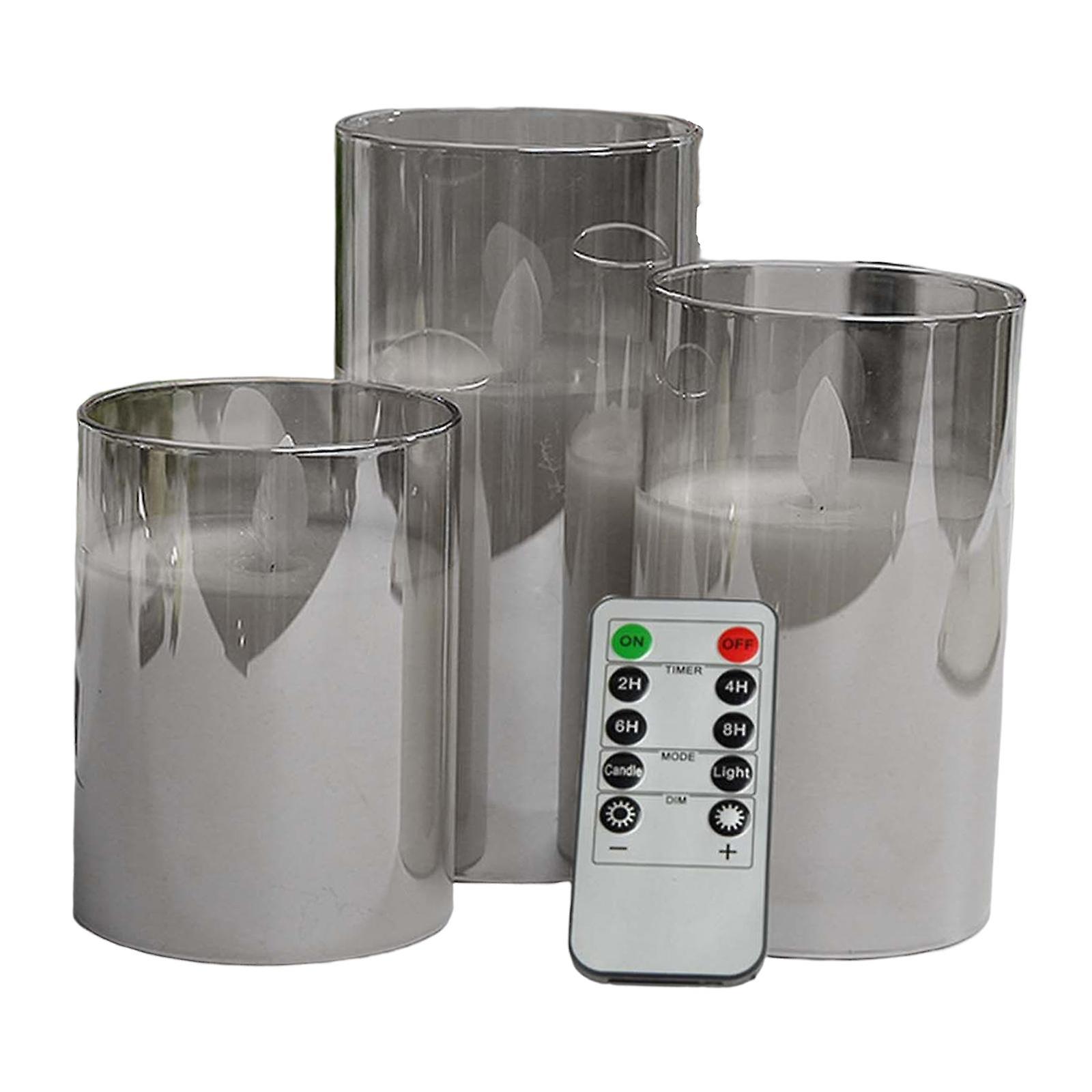3 Pieces Flickering Flameless Candles for Centerpiece Home Party Brown