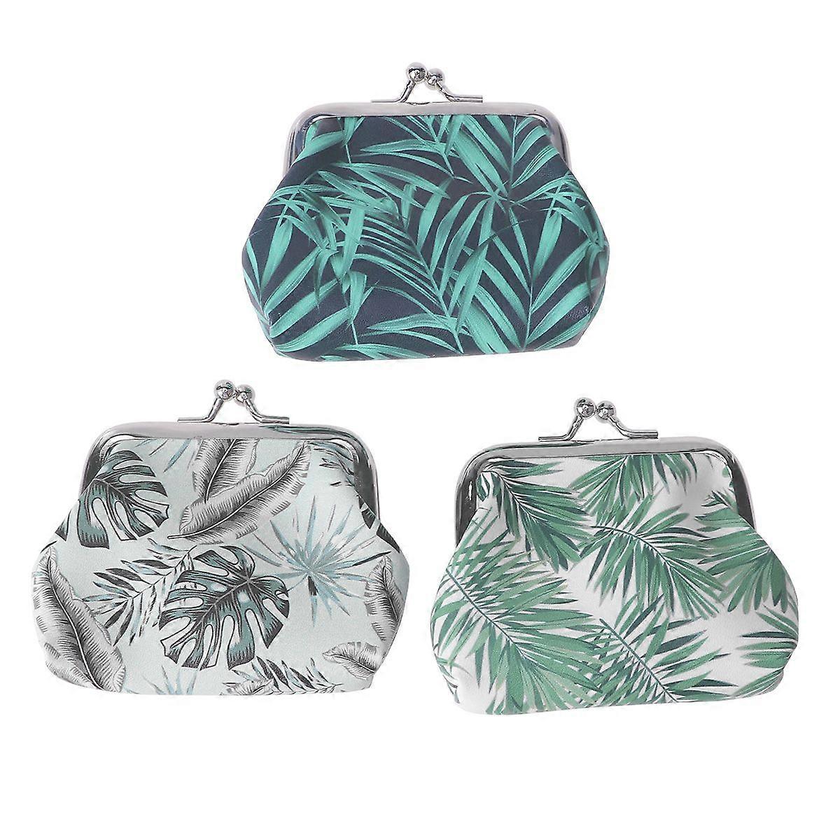3PCS/Set Unique Tropical Palm Leaf Pattern Purse Coin Purse Small Size Vintage Style Purse For Children Women Daily Use