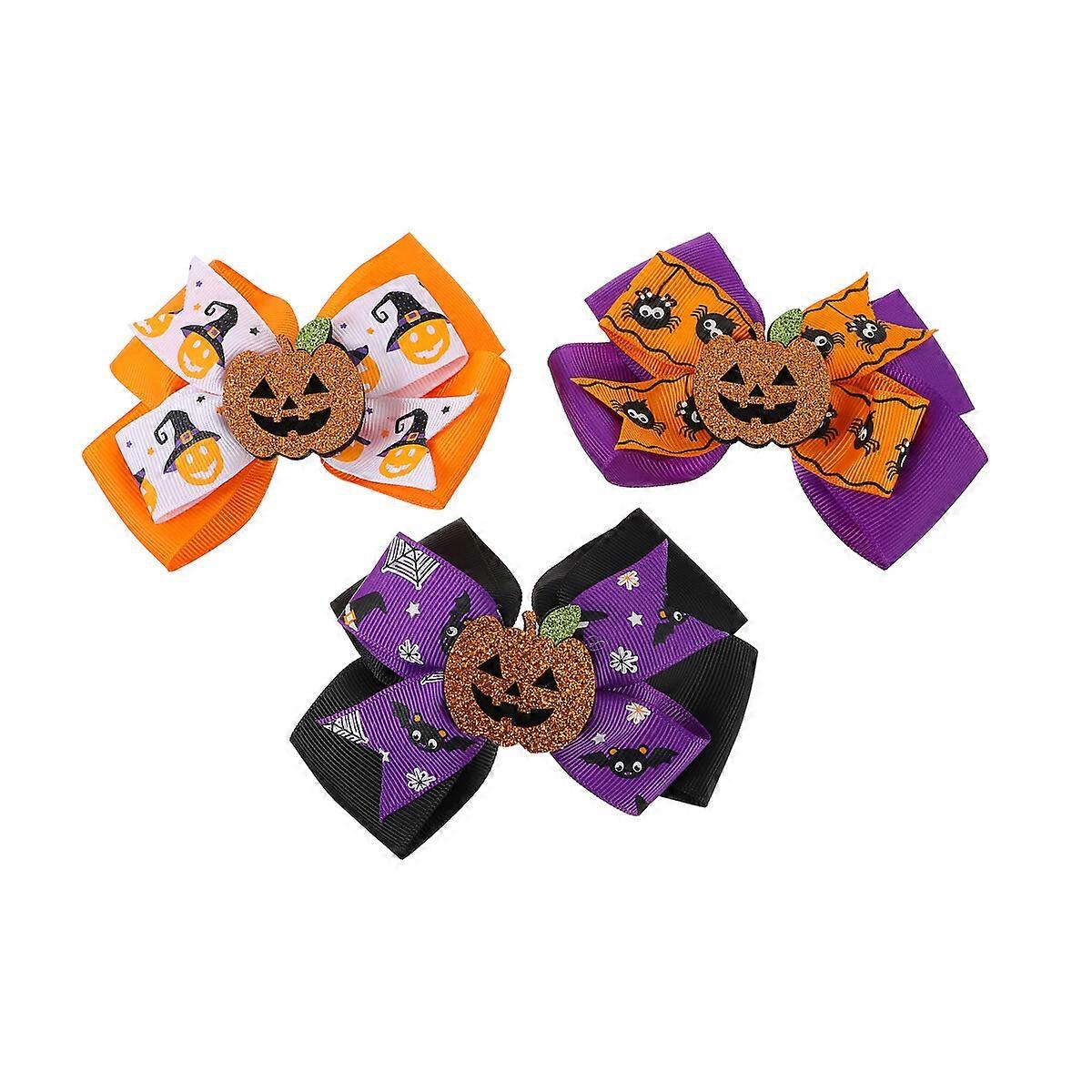 3pcs Halloween Hair Accessories Pumpkin Bowknot Hair Clips Barrettes for Kids