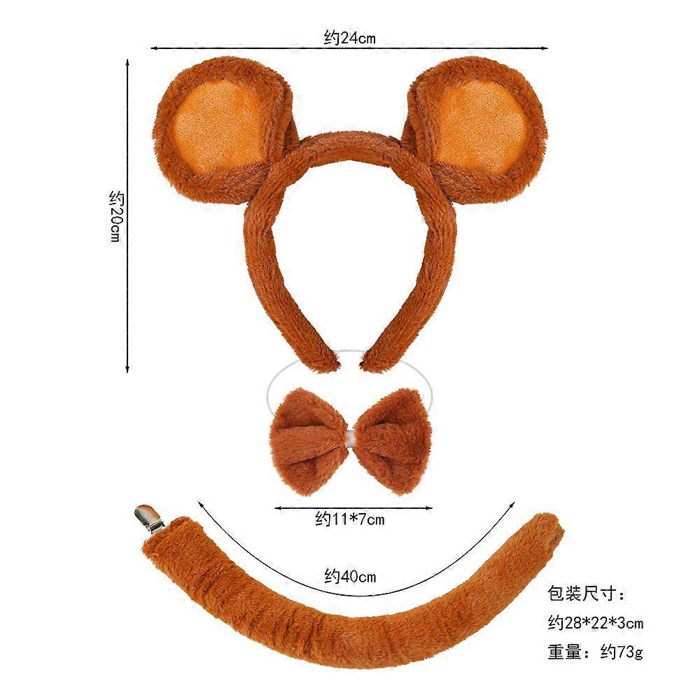 3pcs Realistic Mouse Ears Headband Soft Plush Rat Bowtie And Tail Set Cute Fluffy Animal Costume Accessories For Kids Adults Halloween Party Cosplay D