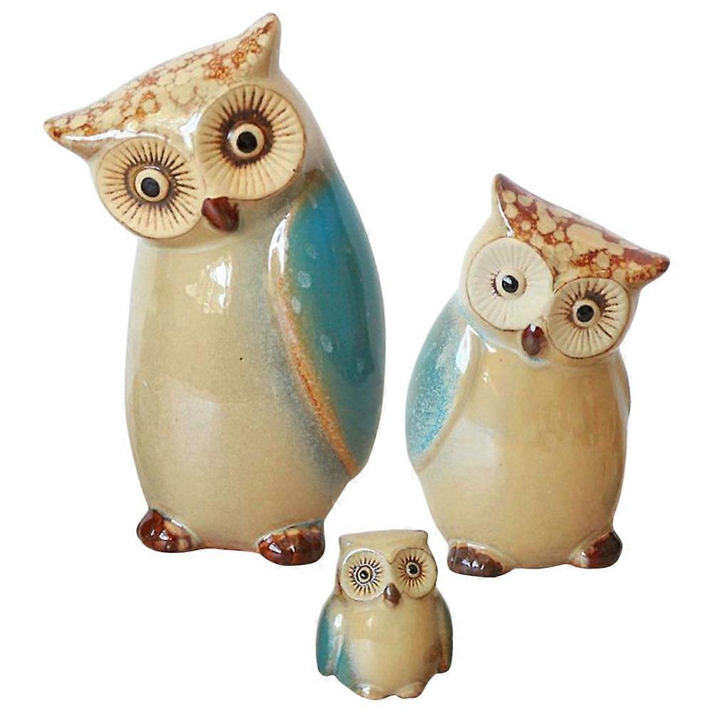 3pcs Handmade Ceramic Owl Figurines Decorative Porcelain Ornaments for Home or Office Unique Craft Gift for Owl Lovers