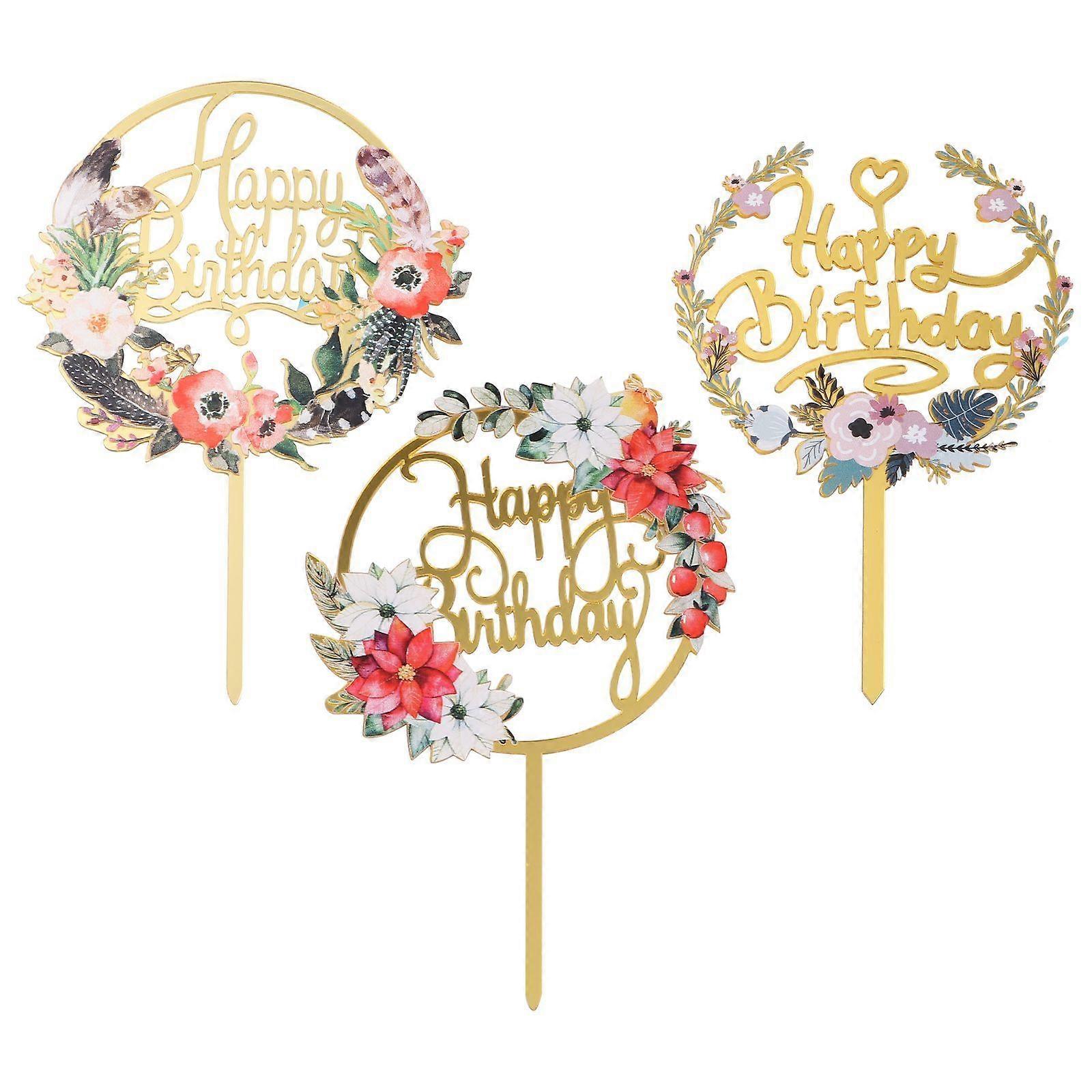3pcs Creative Birthday Party Cake Floral Shape Acrylic Toppers Cake Picks