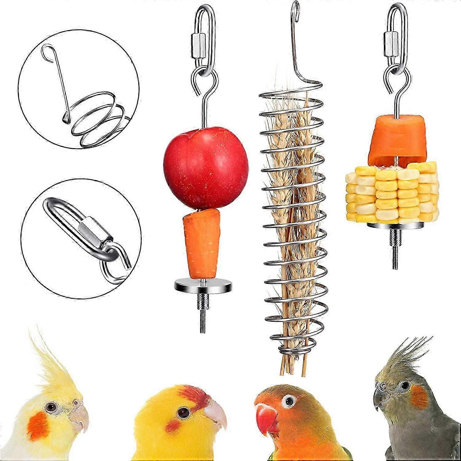 3PCS Bird Food Holder Stainless Steel Parrot Hanging Vegetable Fruit Feeder