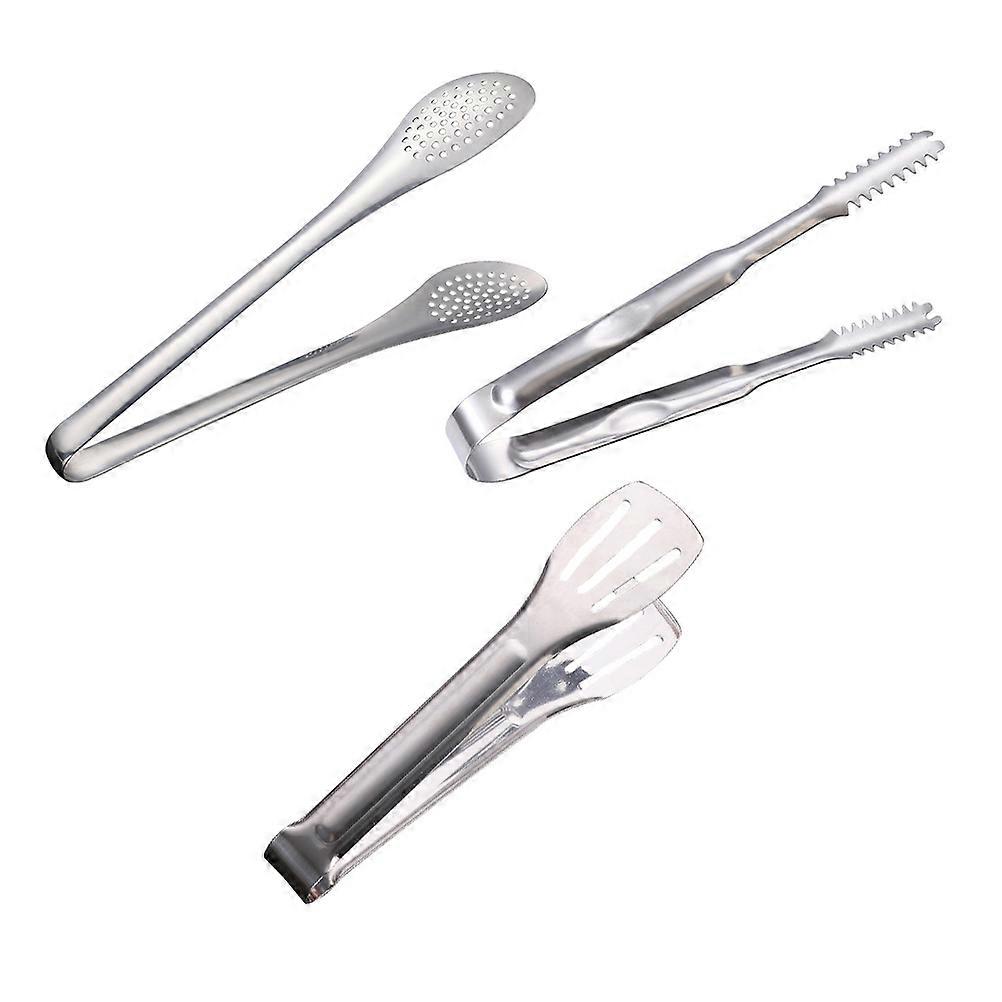 3pcs Stainless Steel Serving Tongs for Food, Grilling, Buffet, Cooking, Baking, and Daily Use Silver