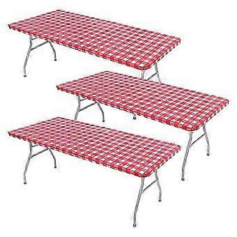3 Pcs Fitted Tablecloth for Table,Stretch Waterproof Elastic Vinyl Picnic Table Cover with Flannel B