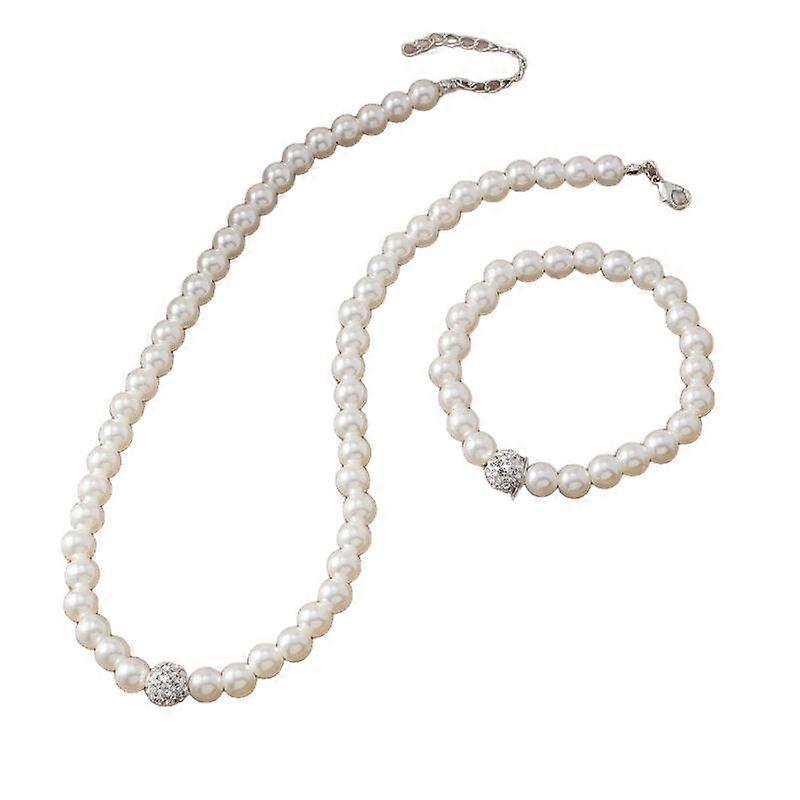 3 PCS Set Imitation Pearl Fireball Necklace Bracelet Earring Stud Jewelry Set Silver Color Crystal Stone Elegant Bridal Jewelry