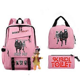 3pcs/set Skibidi Toilet Fashion Printed Backpack Lunch Bag Pencil Box Students Large Capacity Schoolbag Causal Breathable Bag