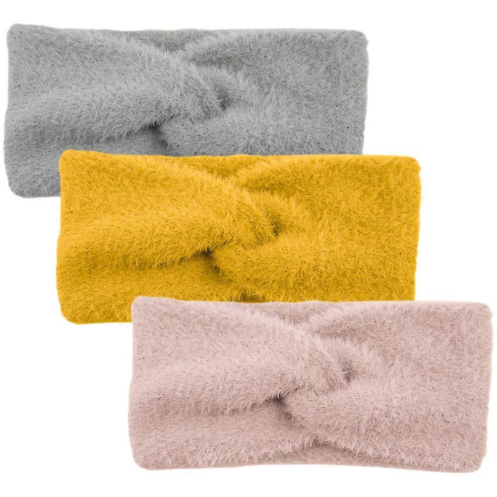 3pcs Warm Furry Headbands for Soft Knot Hair Wrap – Comfortable & Stylish Ear Warmers for Daily Wear & Special Occasions – Grey & Ginger