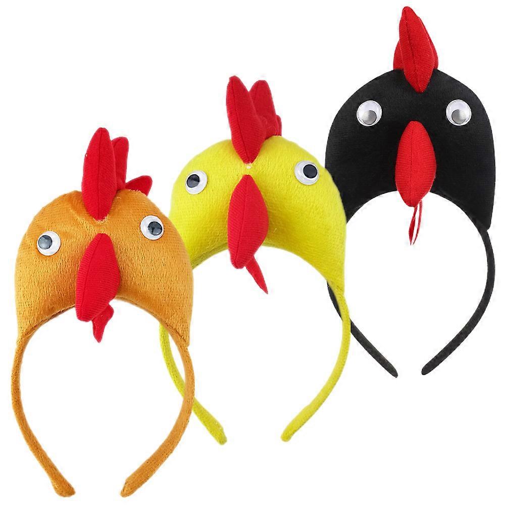 3PCS Rooster Headbands for Costume Parties, Cartoon Animal Hair Accessories for Easter Birthdays, Fun Photo Props Makeup Headbands for Jungle Themed