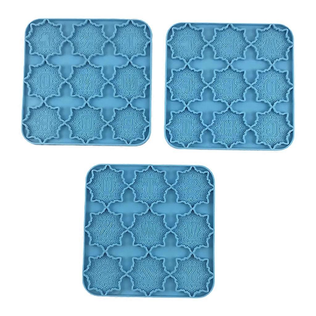3 Pcs DIY Mandala Alphabet Epoxy Resin Mold 26 Letters Keychain Silicone Mould Multicolor