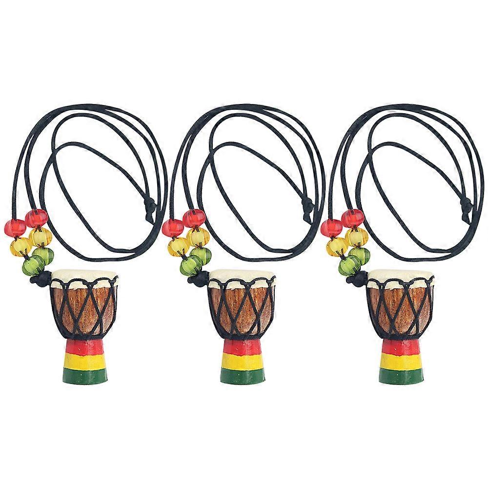 3Pcs Wooden Classic Drummer Necklace Mini Djembe Percussion Neck Pendant African Hand Drum Gift Neck Jewelry (Random Color)