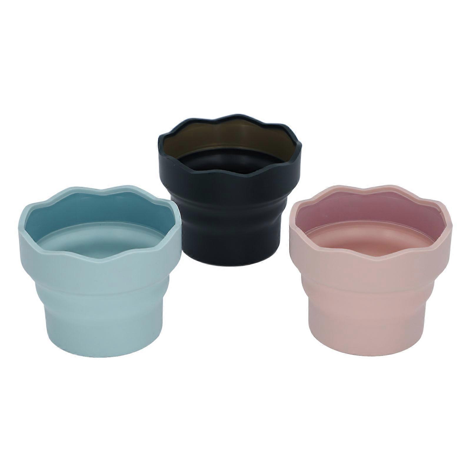 3pcs Folding Paint Multipurpose Reusable Silicone Artist Brush Washer Water Cup for Watercolor Oil Painting Pink Dark Green Blue