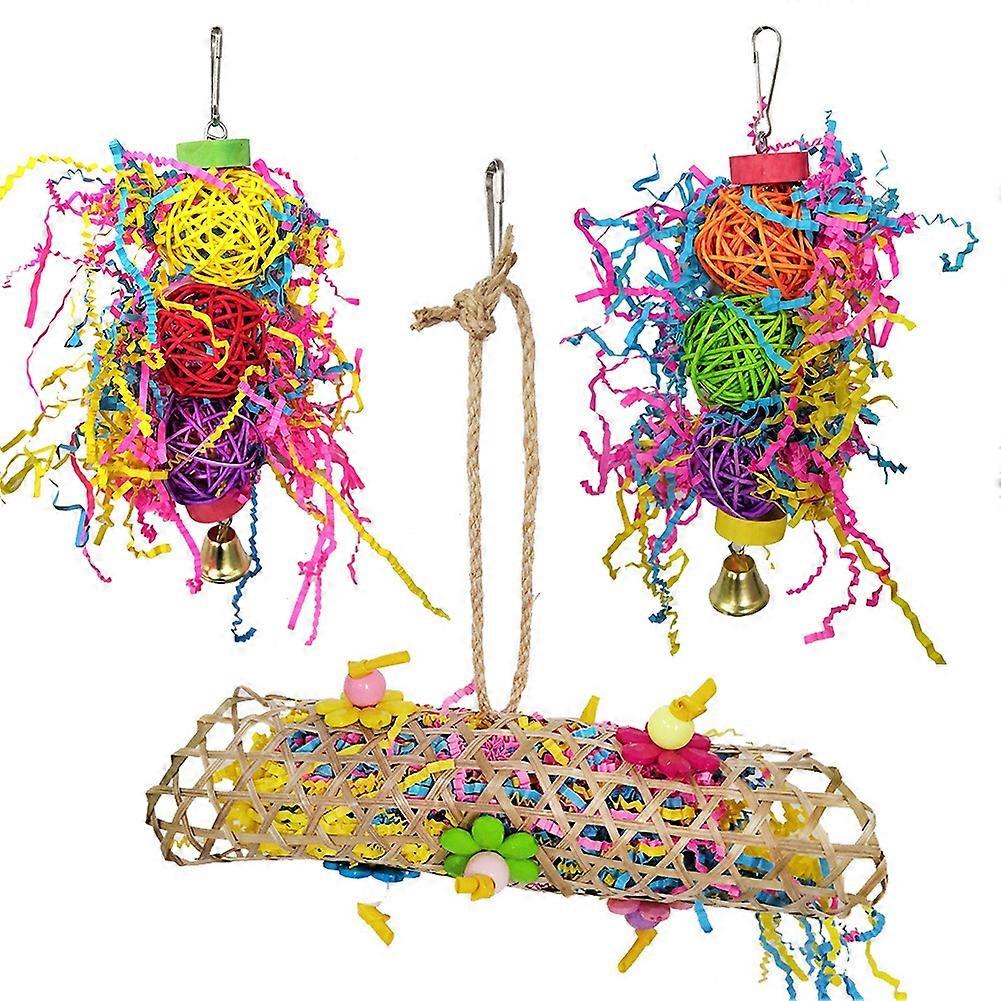 3Pcs Pet Bird Parrot Bell Rattan Ball Hanging Climbing Cage Bite Chew Molar Toy