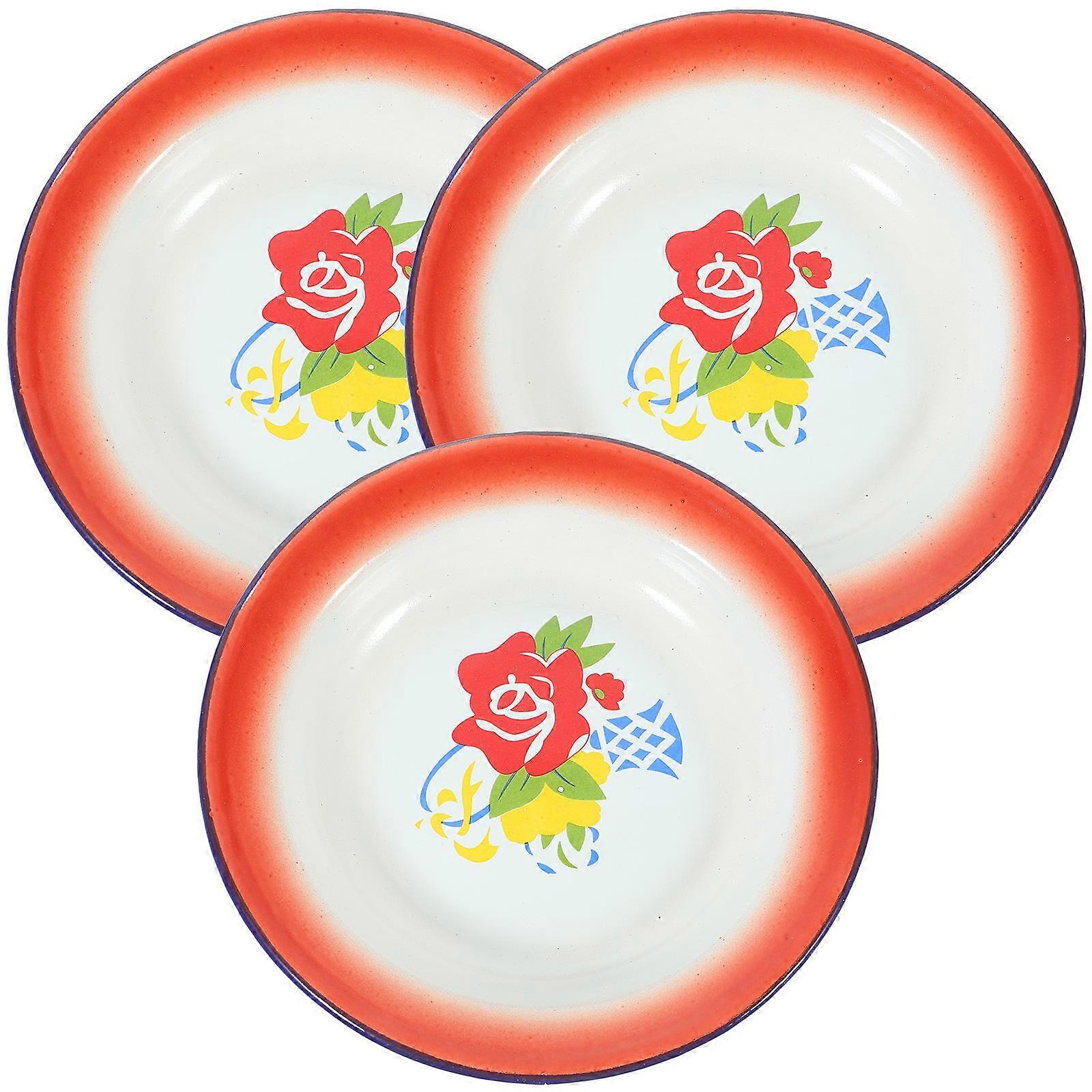 3pcs Vintage Enamel Serving Plates, Retro Style Snack Trays for Fruits, Nuts, Desserts, Decorative Tableware for Home, Hotel, Restaurant, Picnic