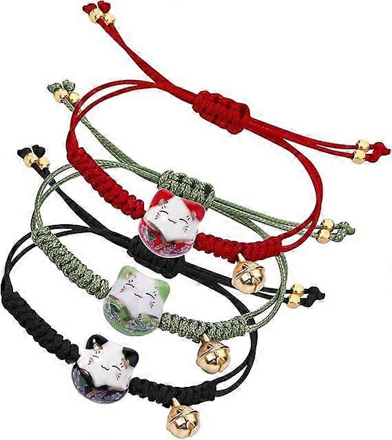 3 Pcs Cat Bracelet Maneki Neko Cute Lucky Bracelet - Japanese Fortune Hand String with Bell - Asian Jewelry Adjustable Rope for Wrist Decor